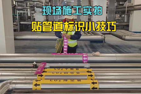 管道標(biāo)識對于確保工業(yè)安全至關(guān)重要。施工前需先清理管道表面,使用軟毛刷去除塵土并用酒精清潔,確保表面干燥。接著確定標(biāo)識位置,通常在管道的起點(diǎn)、終點(diǎn)及重要節(jié)點(diǎn)。粘貼色環(huán)時僅撕開一小部分背膠,以便于微調(diào)位置,同時減少氣泡和褶皺的產(chǎn)生。使用刮刀從中心向兩邊抹平,確保貼合緊密。文字標(biāo)簽與箭頭指示應(yīng)準(zhǔn)確貼于色環(huán)旁,標(biāo)明介質(zhì)名稱和流向。這樣的做法不僅便于安裝,也方便日后維護(hù)和更換。