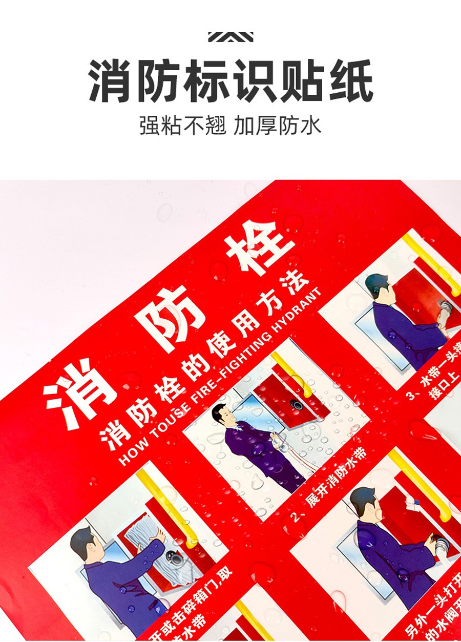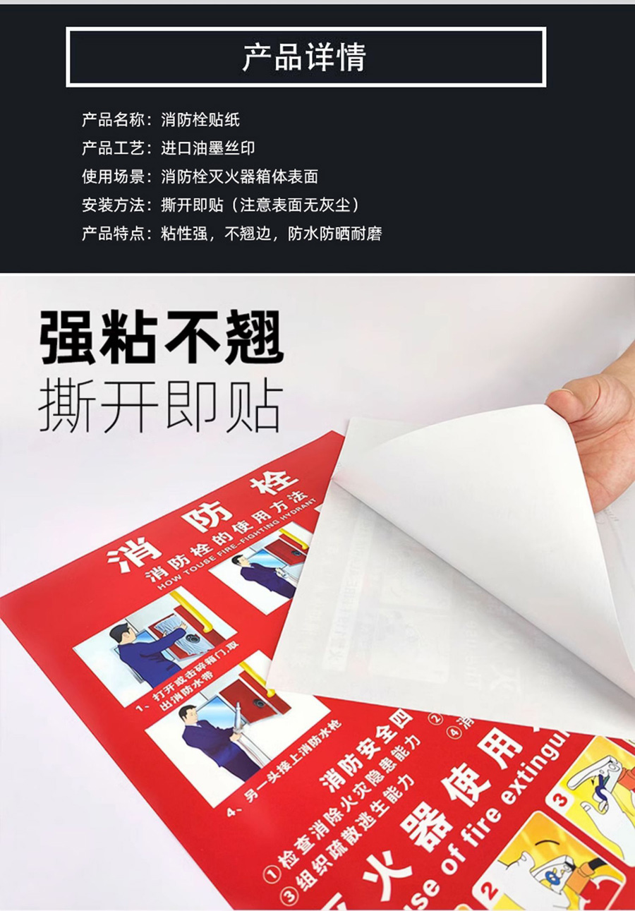 本款消火栓使用說明貼紙采用優(yōu)質(zhì) PVC 材料制作,防水、耐磨、耐撕,不易損壞。貼紙內(nèi)容清晰明了,以簡潔直觀的圖文形式展示消火栓的使用步驟,讓您在緊急時刻能夠快速掌握操作方法。適用于各類場所的消火栓箱,是保障消防安全的必備標識,為您的生命財產(chǎn)安全保駕護航。