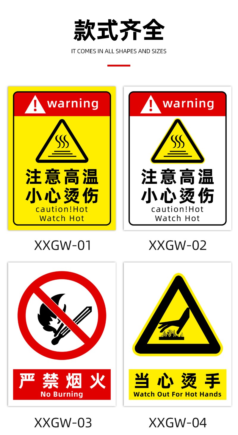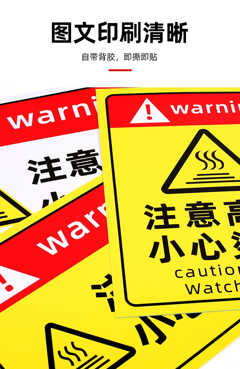 “注意高溫提示貼”“小心燙傷警示標(biāo)志”“防燙傷標(biāo)識(shí)”均采用優(yōu)質(zhì) PVC 材料制作,結(jié)實(shí)耐用。這些標(biāo)識(shí)設(shè)計(jì)醒目,文字清晰,圖案直觀,能夠快速有效地傳達(dá)安全信息。自帶背膠,粘貼簡(jiǎn)單牢固,可廣泛應(yīng)用于廚房、工廠、實(shí)驗(yàn)室等存在高溫燙傷風(fēng)險(xiǎn)的場(chǎng)所,時(shí)刻提醒人們注意高溫危險(xiǎn),防止?fàn)C傷事故發(fā)生,為您的工作和生活環(huán)境打造可靠的安全防線。