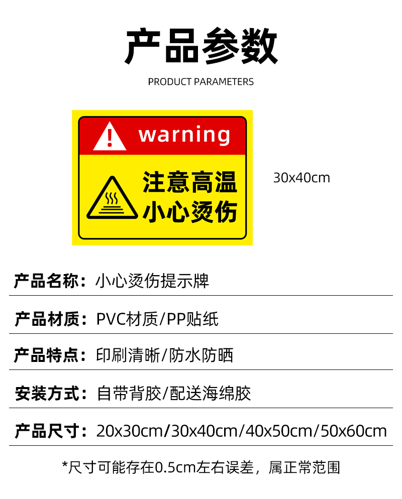 注意高溫/小心燙傷提示貼
