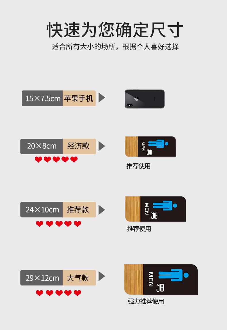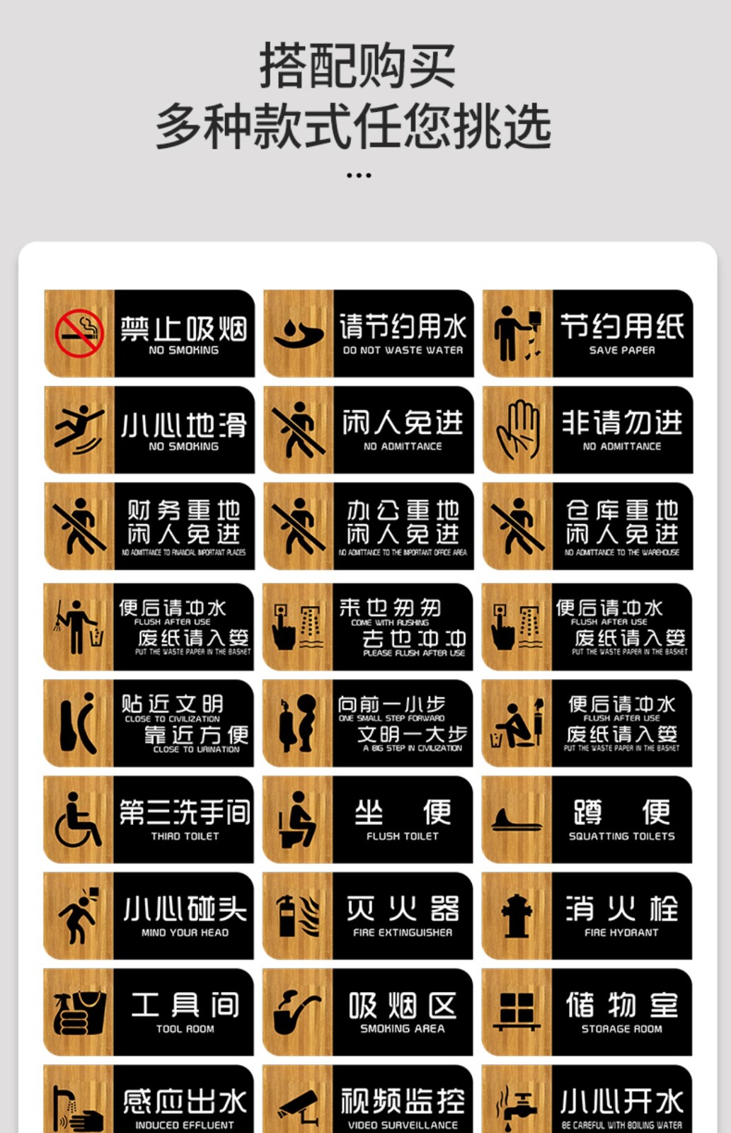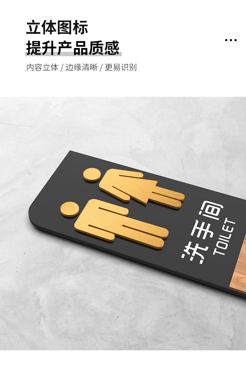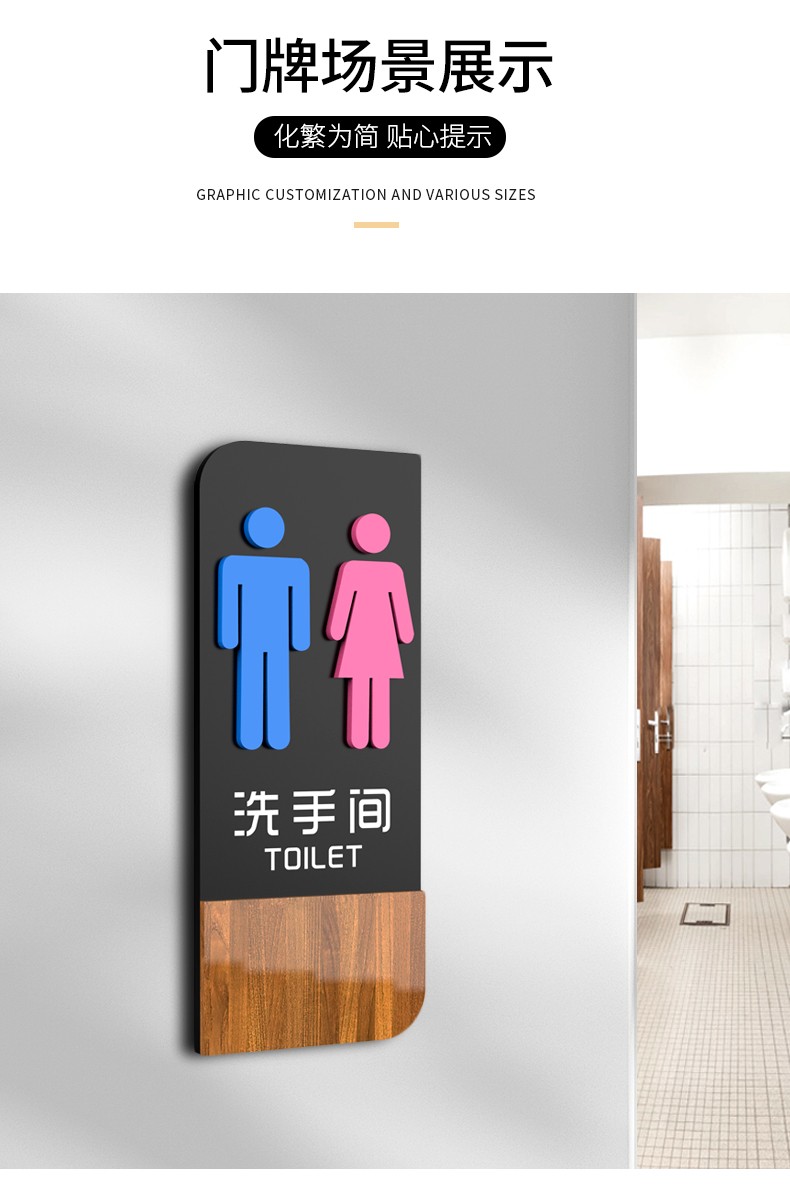 我們匠心獨運,推出木紋風(fēng)格男女衛(wèi)生間標(biāo)識牌,將自然元素融入現(xiàn)代設(shè)計。采用高品質(zhì)亞克力材質(zhì),模擬真實木紋質(zhì)感,既環(huán)保又耐用。標(biāo)識清晰,色彩鮮明,輕松指引方向。獨特的創(chuàng)意造型,為洗手間增添一抹溫馨與雅致。無論是商業(yè)場所、辦公大樓還是家庭住宅,都能完美融合,營造舒適便捷的如廁環(huán)境。